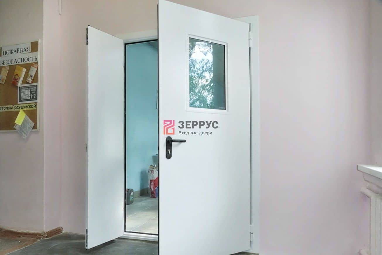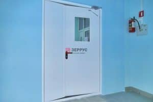 Двустворчатая противопожарная дверь со стеклом CM-30-12